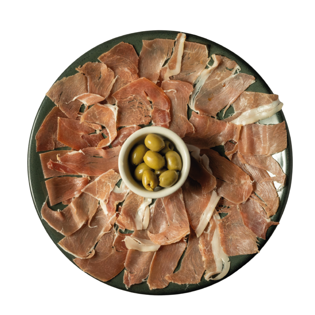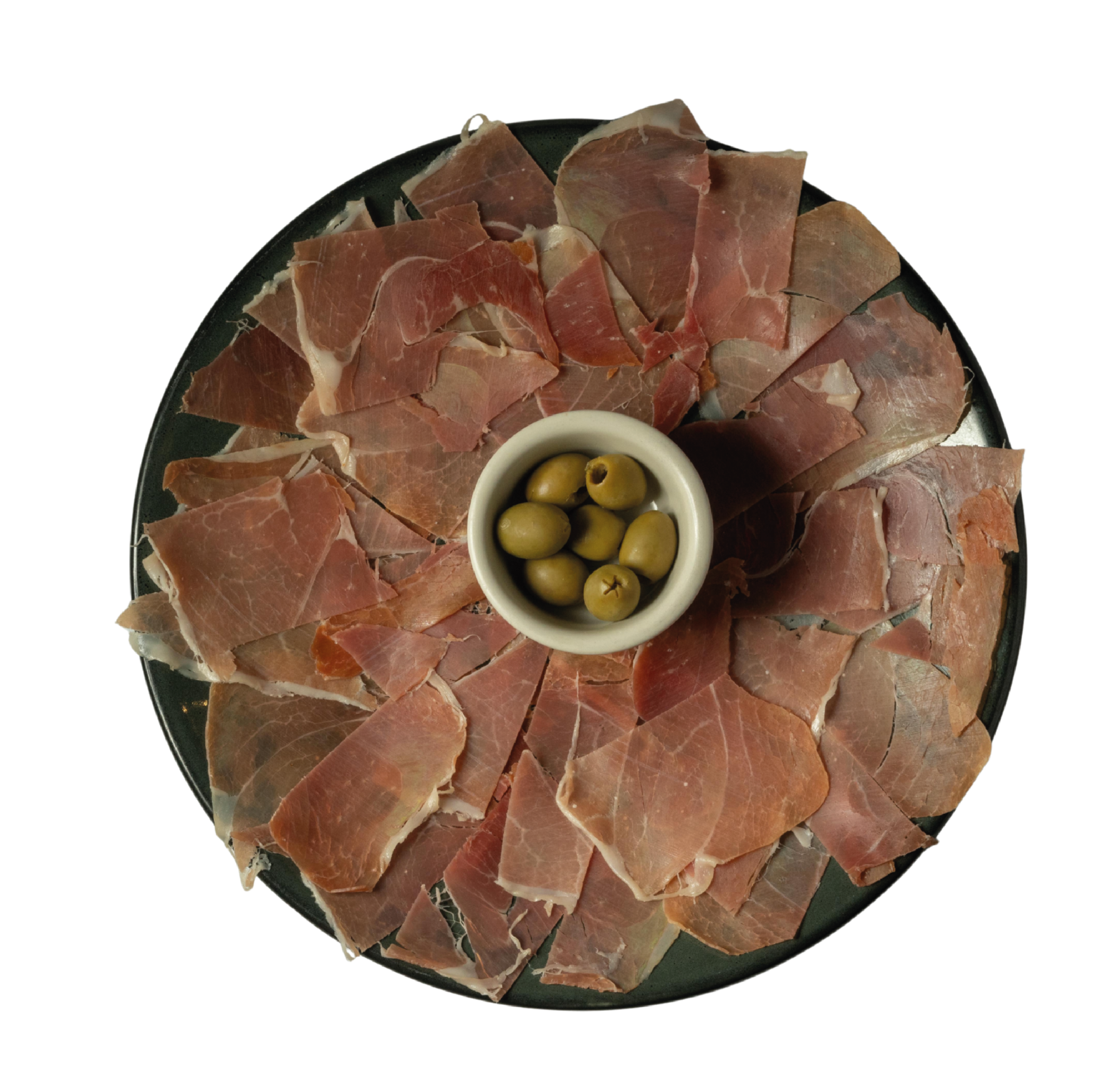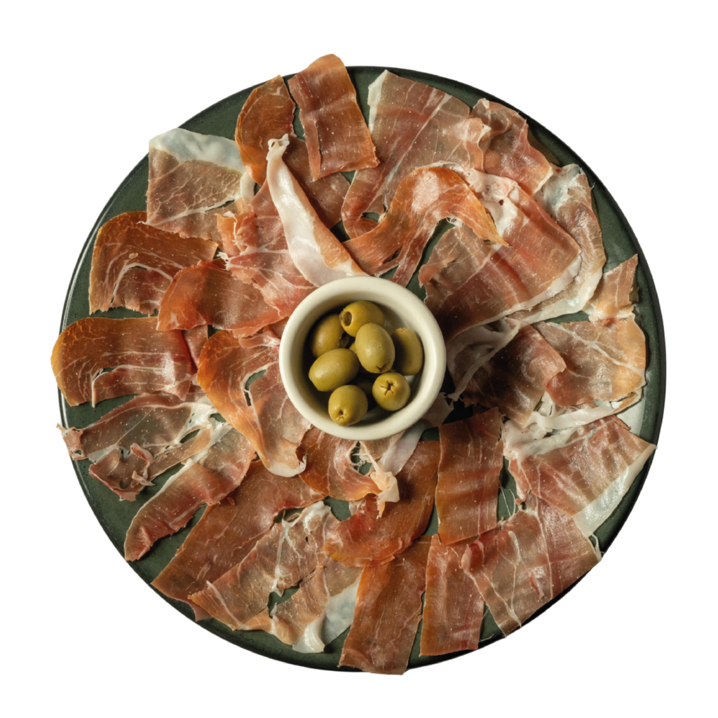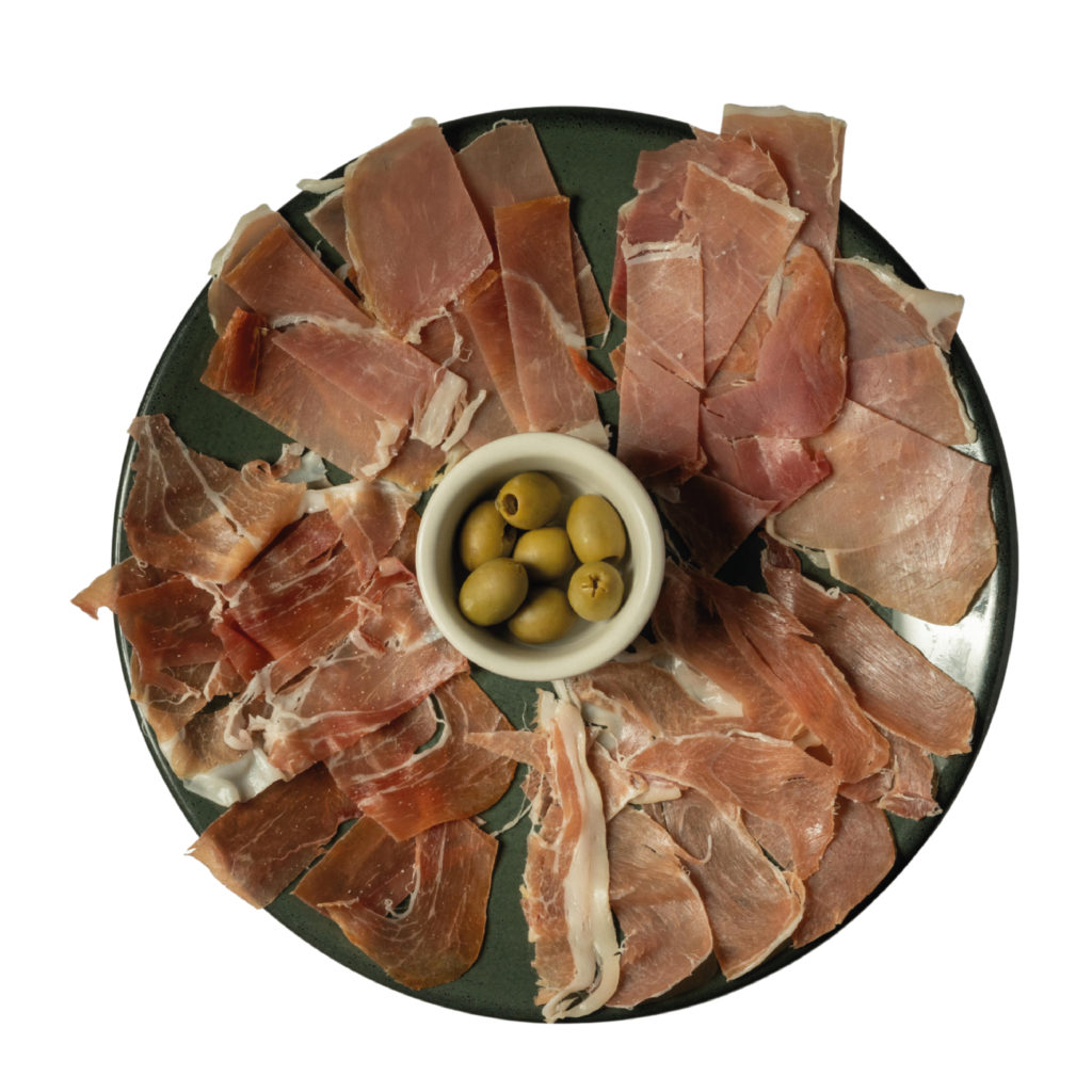 Prosciutto, 9-month Serrano ham, 12-month Serrano ham and 12-month Iberian Serrano ham.